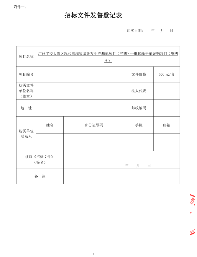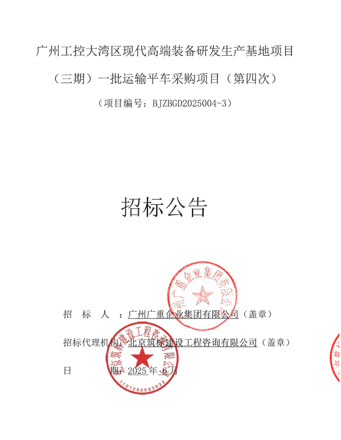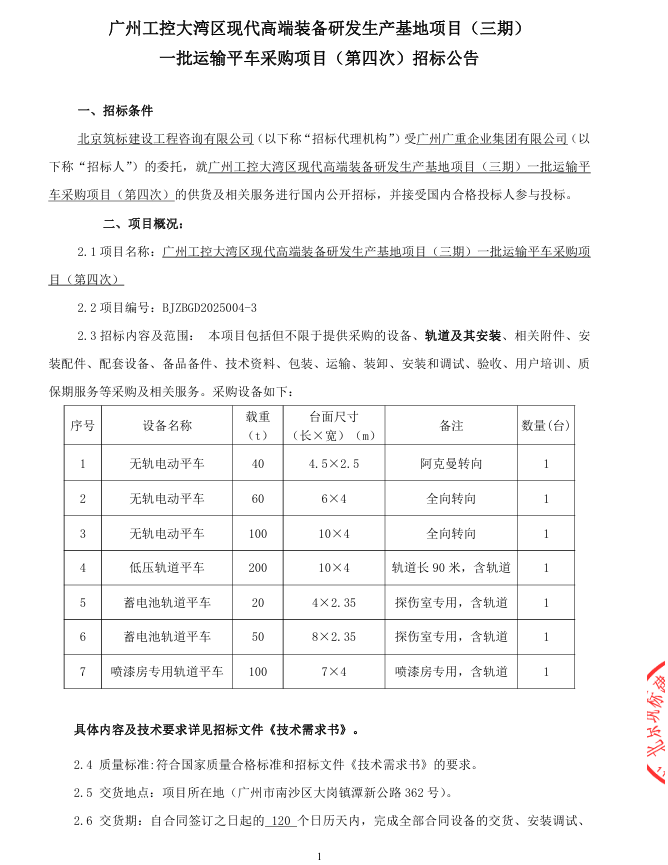 广州工控大湾区现代高端装备研发生产基地项目 (三期)一批运输平车采购项目(第四次)招标公告