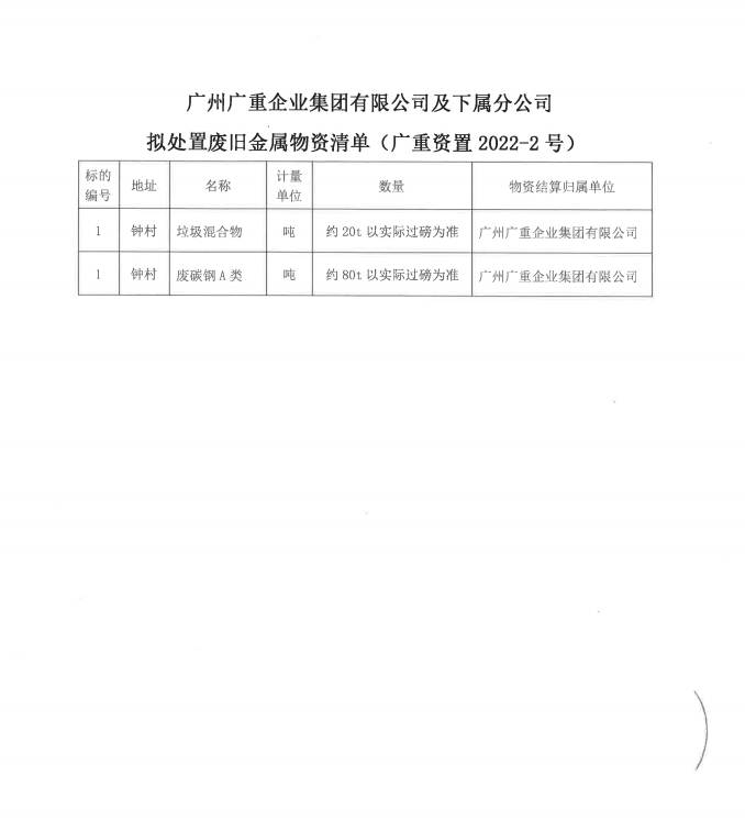废碳钢A类及垃圾混合物处置(英超买球资置2022-2号)